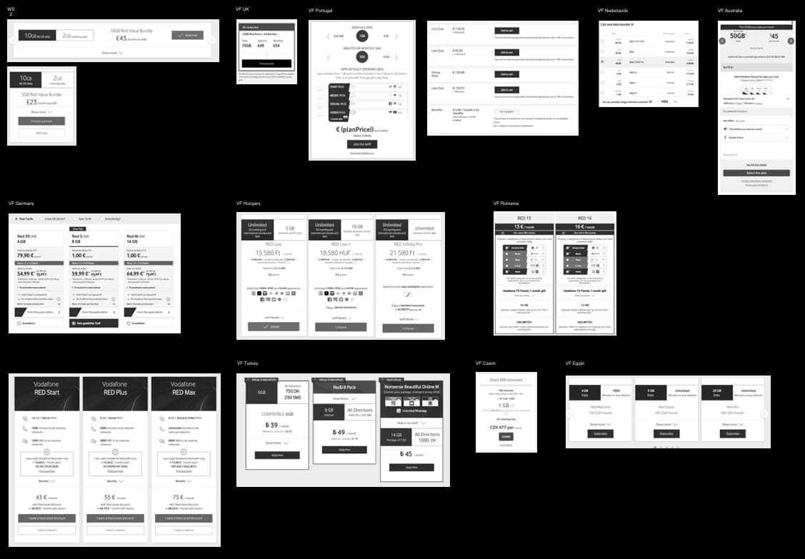 No visual and functional consistency when it comes to how different Vodafone markets show their offers. One reason for this can be the fact that each country is different in terms of offers, KPI’s, or even culturally speaking some visual elements (like colours) resonate better within the local markets than others.