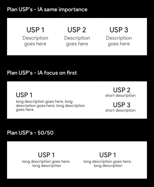 - In most moderated/remote user testing we did on plans pages, people tried to click on the USP’s thinking that they are tabs.