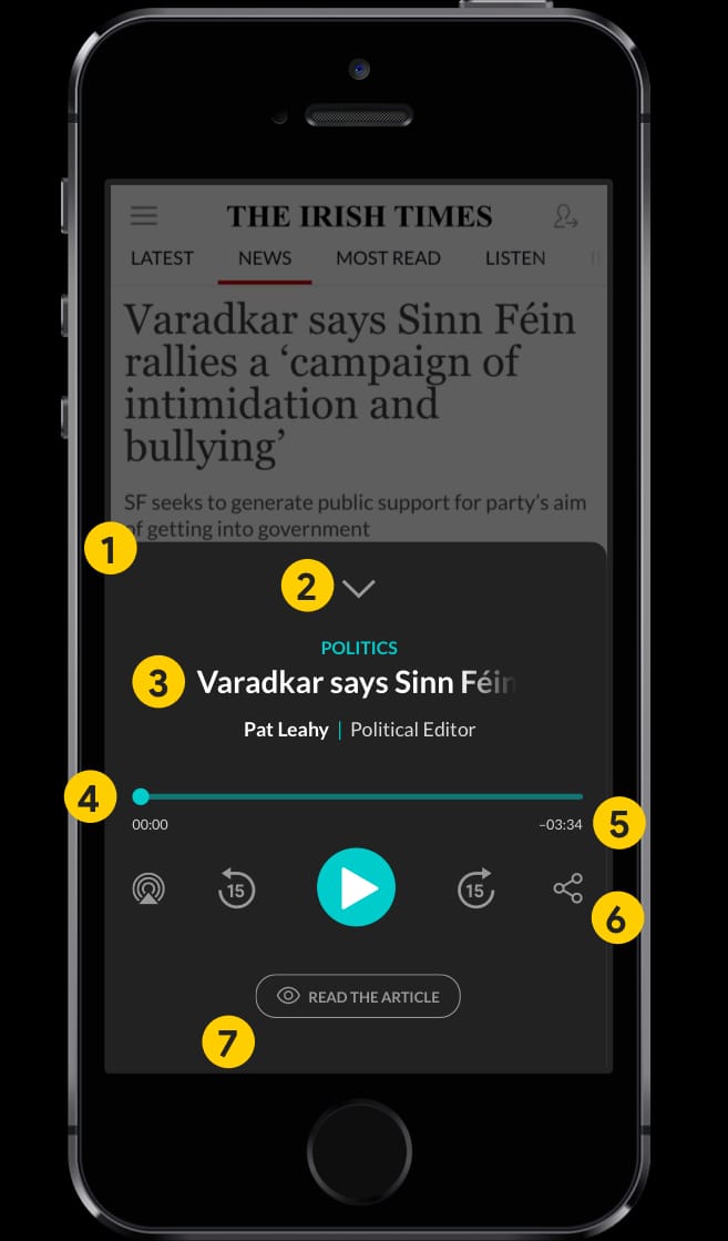 Imagine you are busy driving, commuting, exercising or you are visually impaired and you want to keep up to date with the latest news. "Listen" is a unique media service from The Irish Times, giving the readers the option to listen to text articles or podcasts. (see journey from homepage in the video below)