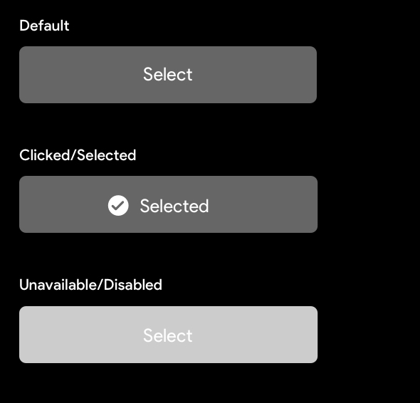 The call to action will have 3 states: default, clicked or selected and disabled. When a plan is selected, the cta colour changes to green and a tick icon will appear.